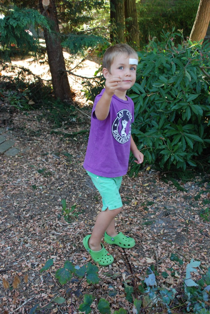 DSC_0008 (2) Published September 6, 2012 at 1944 × 2896 in “It was AWESOME!” Or… Sophie L’s. First Day at Kindergarten. Striking a pose waiting for Sophie’s bus.