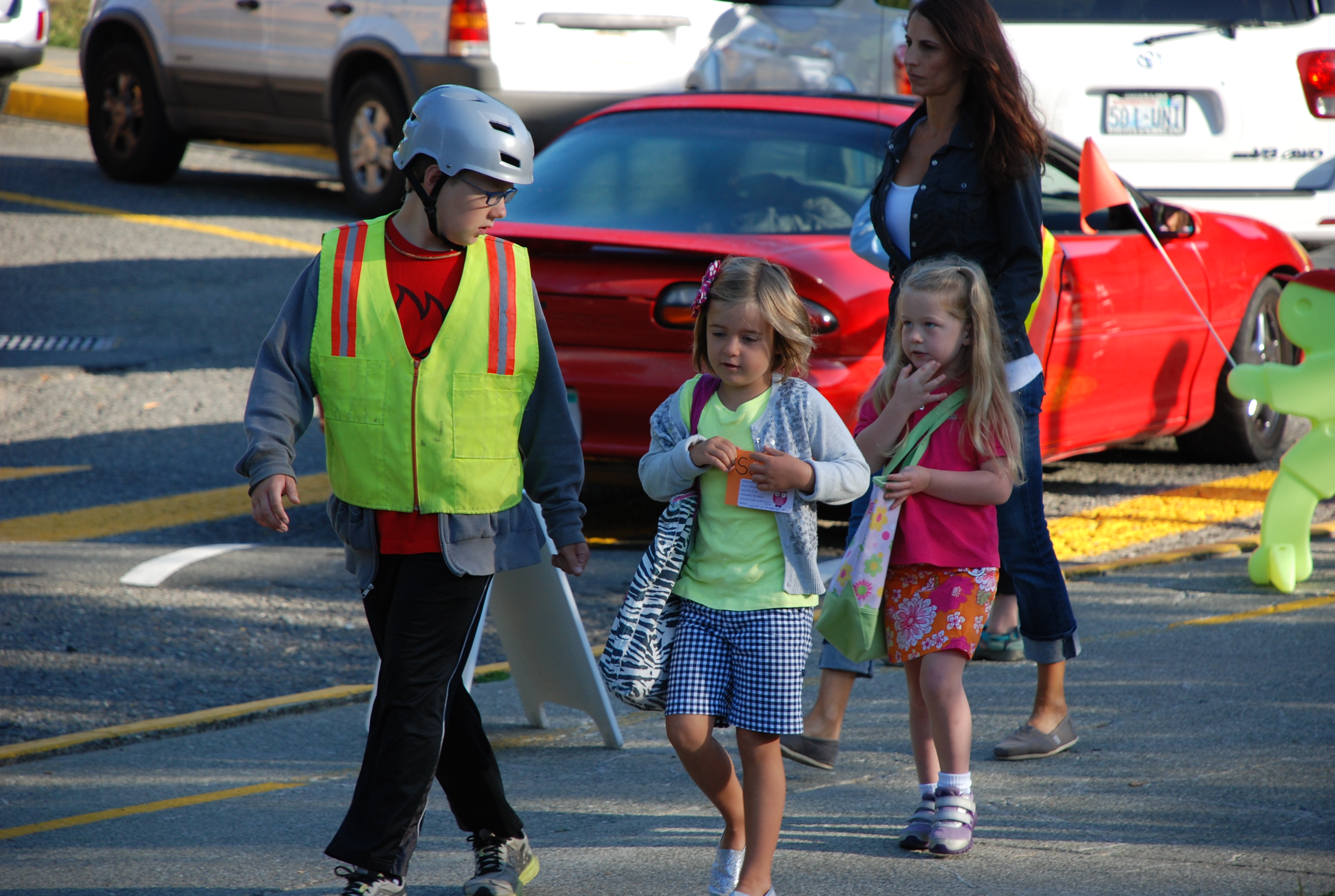DSC_0047 Published September 6, 2012 at 2896 × 1944 in “It was AWESOME!” Or… Sophie L’s. First Day at Kindergarten. Getting chatty with the crossing guard.