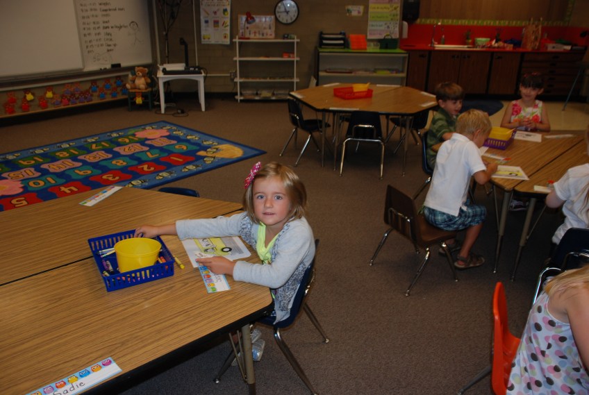 DSC_0064 Published September 6, 2012 at 2896 × 1944 in “It was AWESOME!” Or… Sophie L’s. First Day at Kindergarten. Right before I left… she looks calmer than I felt.