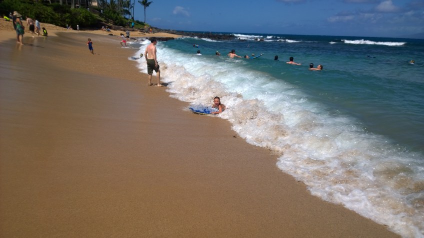 WP_20140413_10_34_26_Pro Published April 17, 2014 at 3072 × 1728 in Here today, but wishing we were still gone to Maui… Sophie riding the surf.